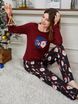 Pigiama comodo per autunno e inverno, completo da donna con pantaloni a maniche lunghe e Babbo Natale, due pezzi