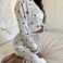 Pigiama da donna, cardigan in seta di ghiaccio di alta qualità con stampa leopardata a forma di cuore di pesca, pantaloni a maniche lunghe