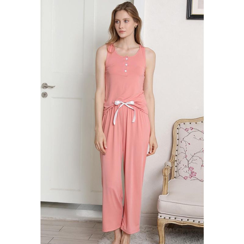 Pigiama due pezzi da donna, primaverile e autunnale, con canotta, pantaloni lunghi