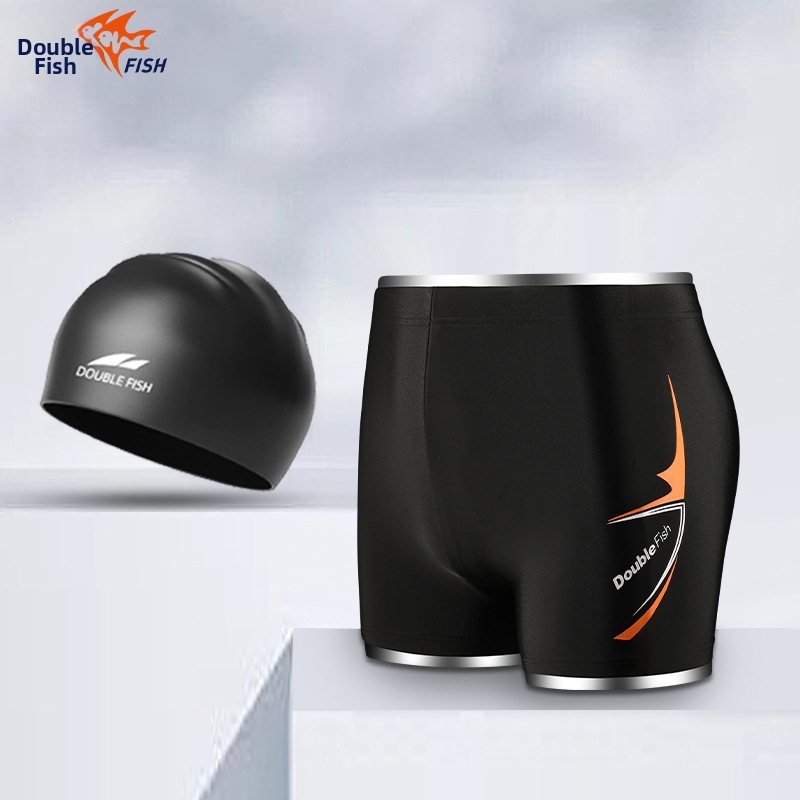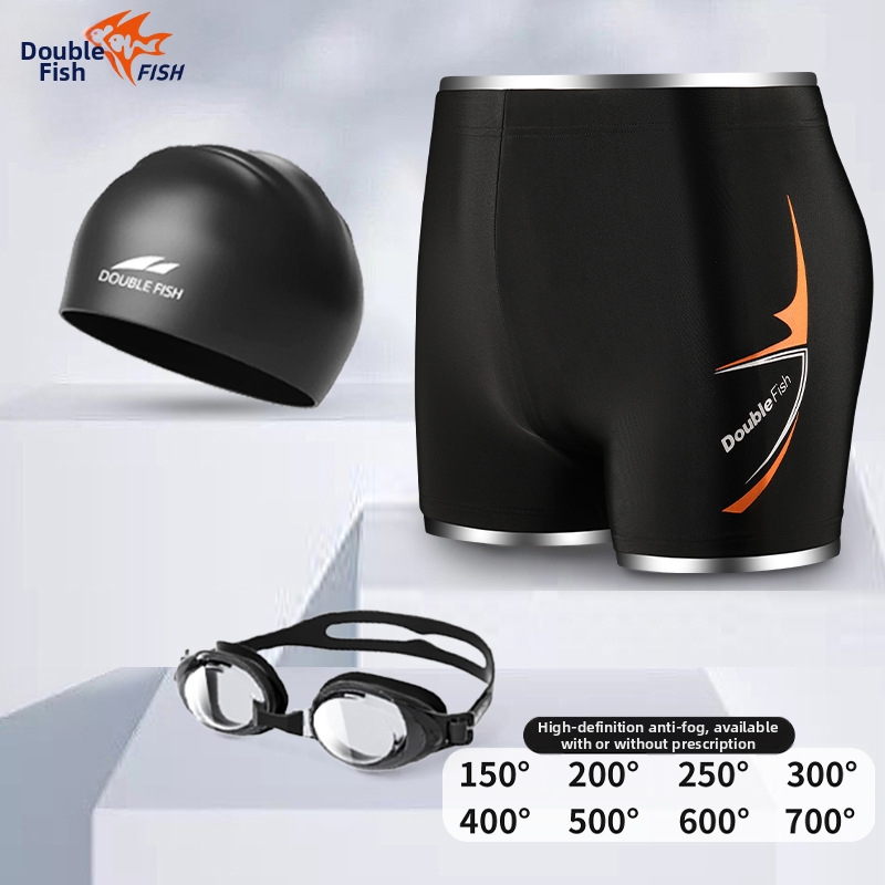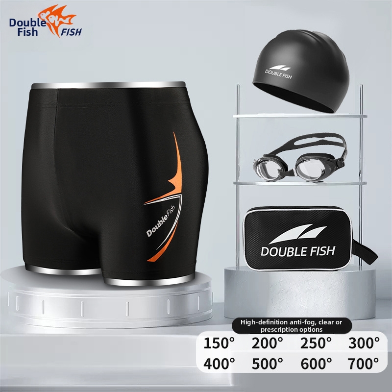 Costume da bagno da uomo Pesci ad asciugatura rapida, taglie forti, con angoli dritti a cinque punte, anti-imbarazzo, con occhialini da nuoto e cuffia, set da tre pezzi per sorgenti termali