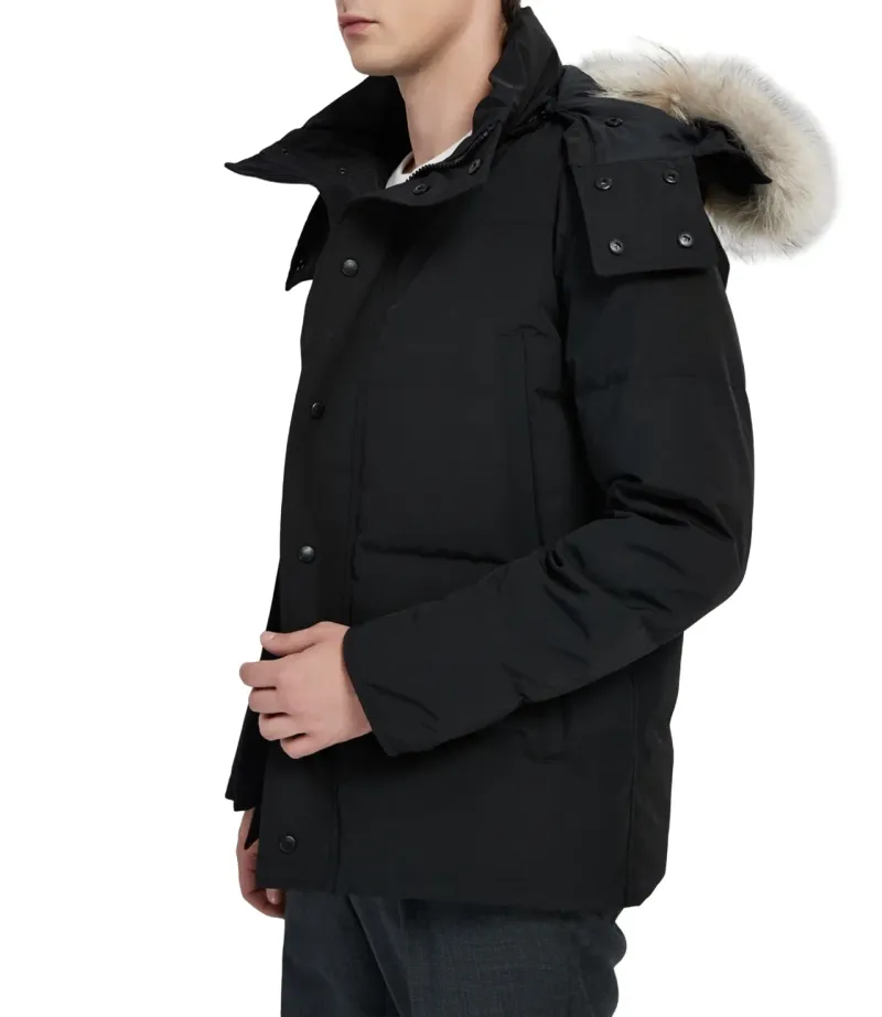 Piumini invernali da uomo, in vera pelliccia di lupo, con cappuccio, antivento, in vera pelliccia di lupo, con colletto lungo in pelle, eleganti e classici_voghion.com