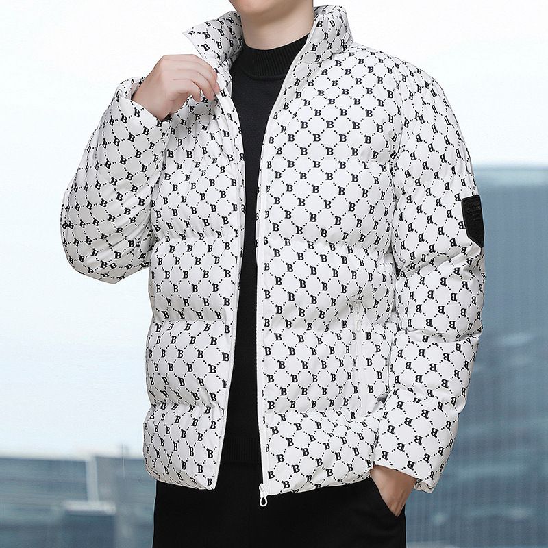 Men's Cotton Jacket 2023 Autumn Winter New Trendy B Letter Thickened Warm Stand Collar Coat Men's Puffer Jacket