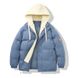 Piumino invernale con cappuccio da uomo, stile streetwear, modello oversize in finto due pezzi (nero, grigio scuro, azzurro, rosa, beige)