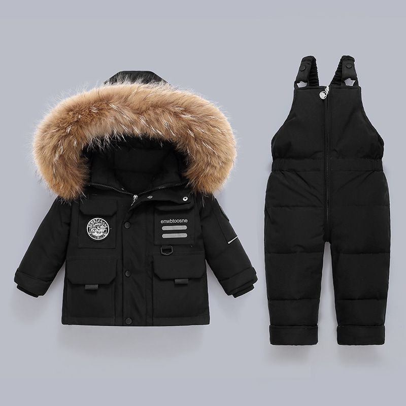 2025 Children's Down Jacket Set Infant Toddler 1-5 Years Old Boys and Girls New Winter Two-Piece Set Top + Overalls