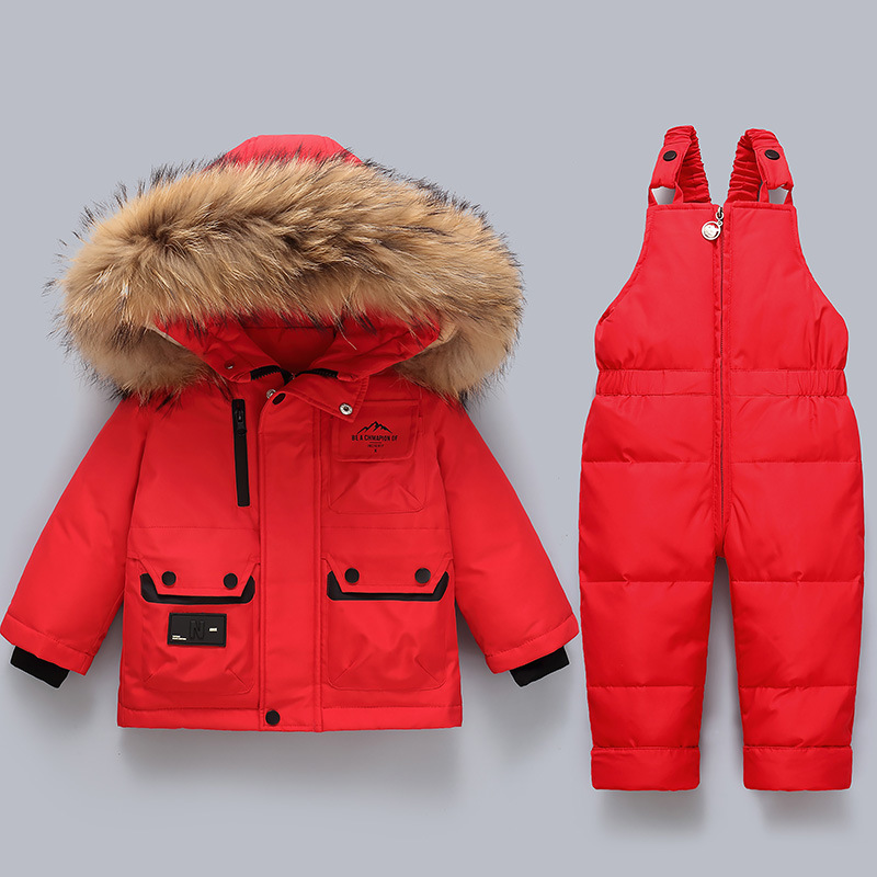 2025 Children's Down Jacket Set Infant Toddler 1-5 Years Old Boys and Girls New Winter Two-Piece Set Top + Overalls