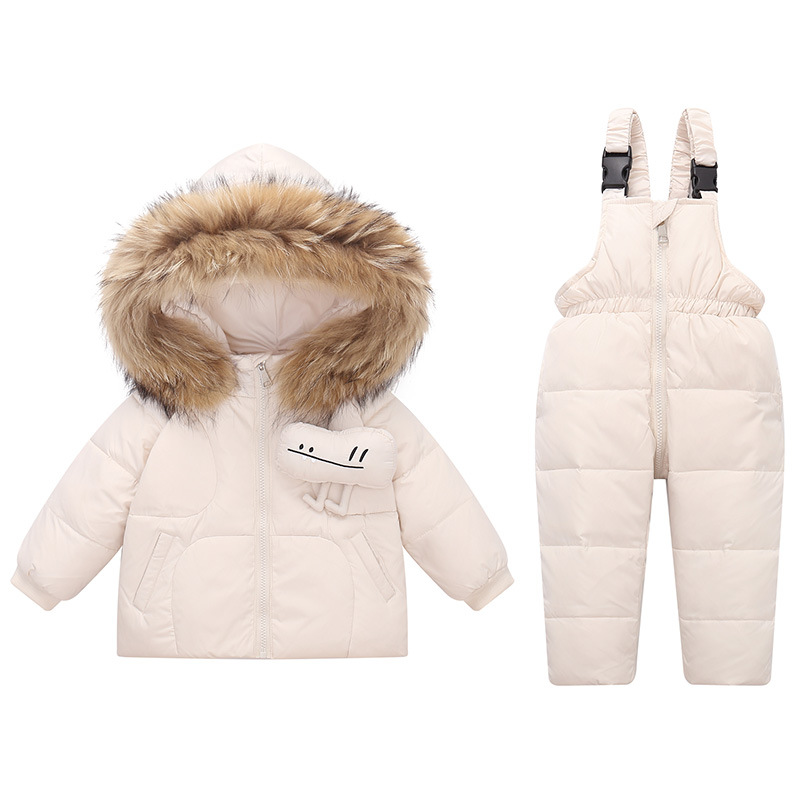 2025 Children's Down Jacket Set Infant Toddler 1-5 Years Old Boys and Girls New Winter Two-Piece Set Top + Overalls