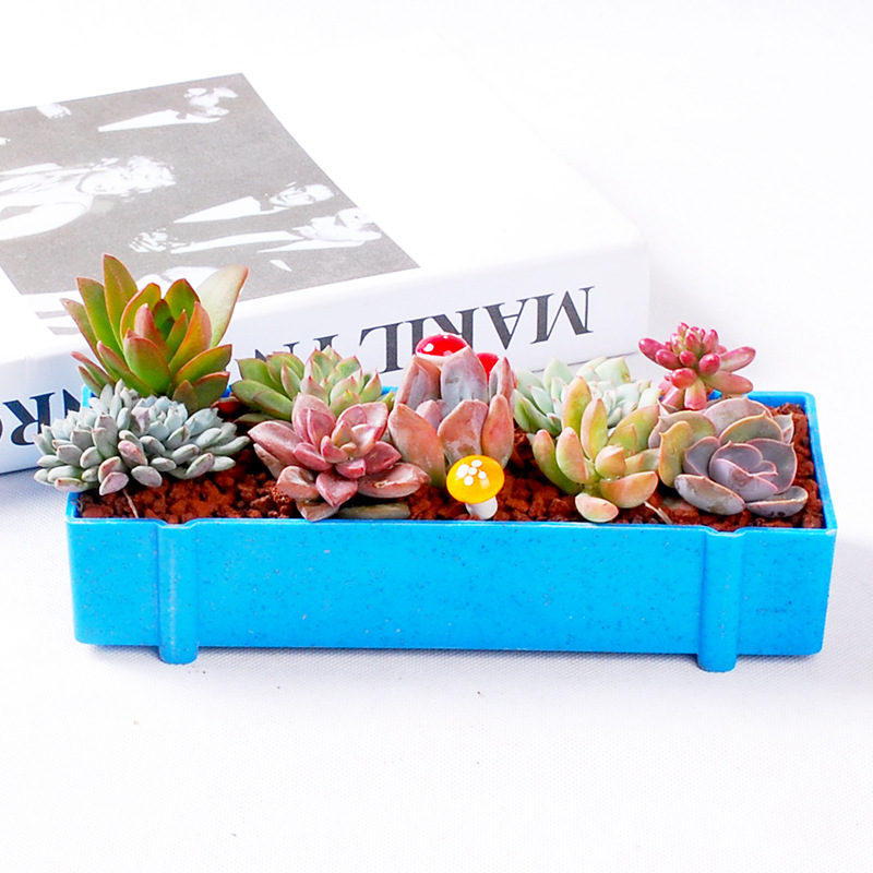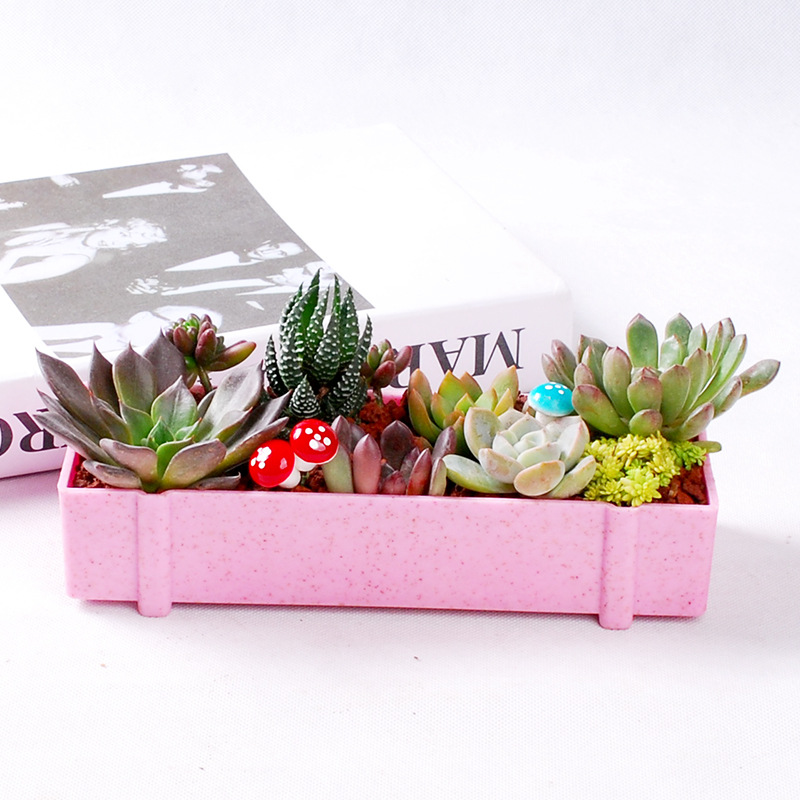 Set di combinazione creativa rettangolare in fibra vegetale, piccolo vaso di fiori in plastica per piante grasse