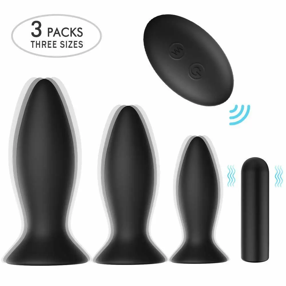 Plug Training Set Vibratori Anali Telecomando 9 Modalità di Vibrazione Giocattoli Sessuali con Base a Ventosa per Uomo,