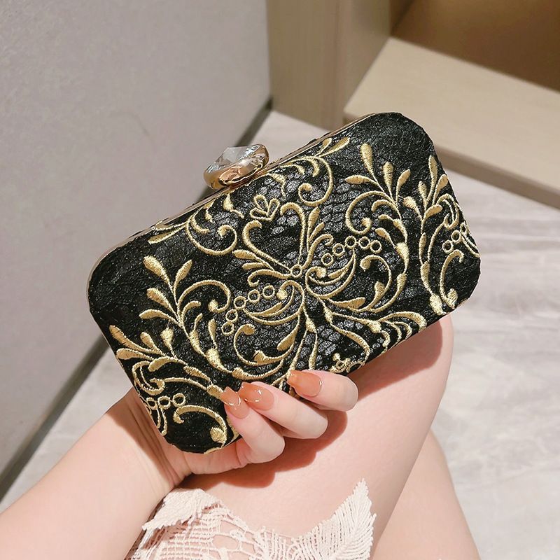 High-end Black Gold Embroidered Evening Clutch Bag, Premium Handbag, Party Small Bag, Matching Dress Bag for Women