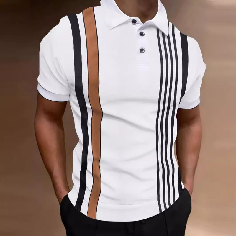 Men's Short Sleeve Striped Printed Button Polo Shirt T-Shirt Top for Men
