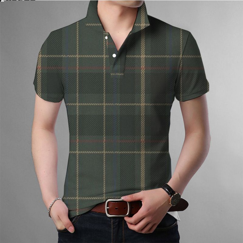 Hot Sale Men's Summer New Color-Block Patchwork Plaid Pattern 3D Printed Men's Polo Shirt Short Sleeve