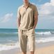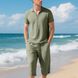 Product Style, Men's Summer Loose Linen Short Sleeve Polo Shirt and Shorts Set