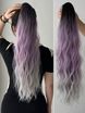 Ponytail Extension Claw 22-24inch Curly Wavy Straight Clip in Hairpiece One Piece A Jaw Long Pony for Women blue with purple