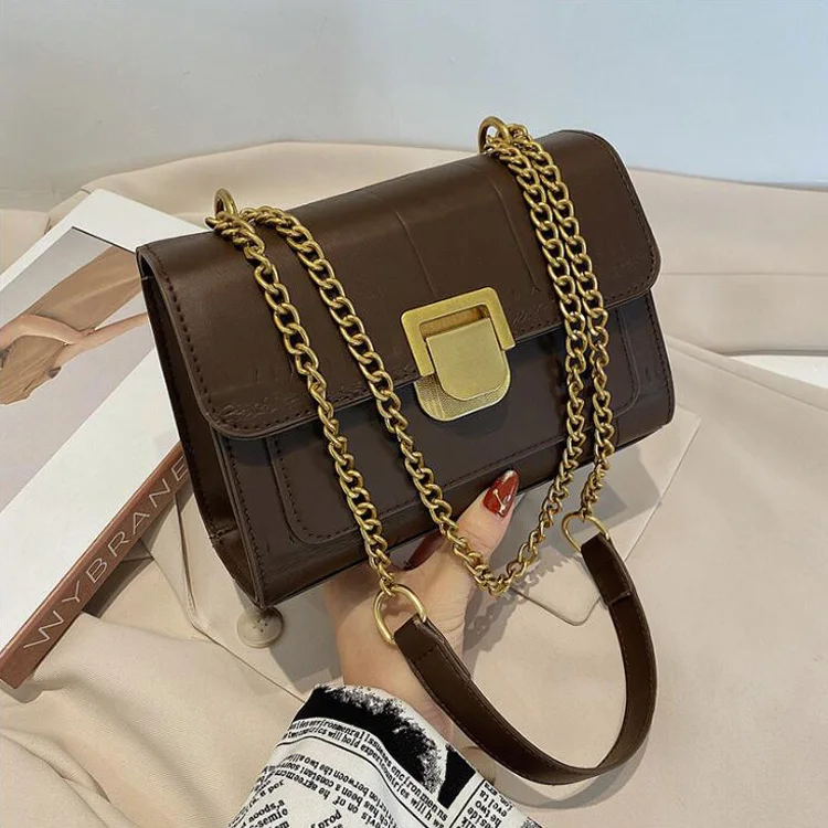 Popolare tracolla a catena per donna Borsa a tracolla con patta alla moda Borse firmate in pelle PU Borse a tracolla da donna