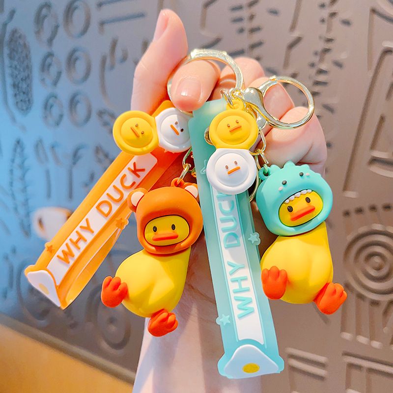 Portachiavi con testa di dinosauro, simpatico cartone animato, collo storto, anatra, coniglietto, bambola, auto, borsa