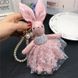 Portachiavi creativo con ciondolo per borsa, in pizzo con strass e coniglio, accessorio per interni auto, stile coreano, tendenza, da donna