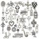 Portachiavi fai da te transfrontaliero in lega d'argento antica con croce e bicchiere da vino, accessori per bracciale, collana, orecchini e pendenti