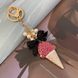 Creative Korean Version Pearl String Ice Cream Car Keychain Women's Bag Pendant Metal Keychain Ring Inlaid with Diamonds Gift