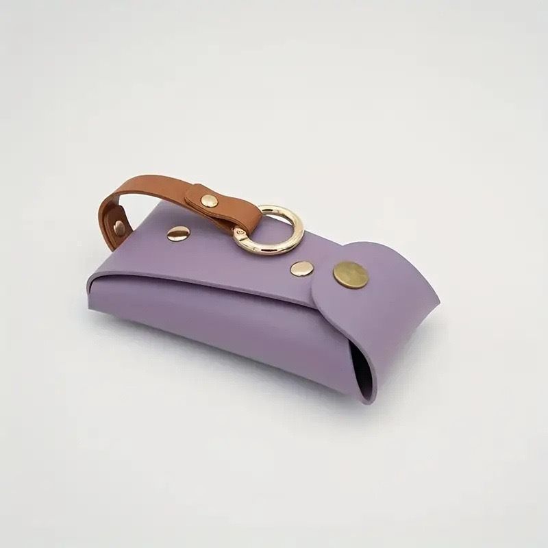 Contrast Color Leather Key Bag Large Capacity Pull Keychain Anti-Scratch Car Key Door Key Hanging Bag