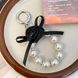 Portachiavi in PU rosa con fiocco in corda di perle, portachiavi per auto, ciondolo per borsa, regalo