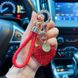 Portachiavi per auto a forma di cuore in argilla con cinturino in pelle intarsiato di diamanti, ciondolo squisito per donna
