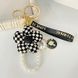 Pearl Tassel Houndstooth Small Flower Beauty Head Car Keychain Pendant Cute Rhinestone Accessories Bag Decoration