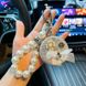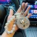 Korean version diamond inlaid small fragrant style folding creative bead string portable car keychain makeup mirror bag