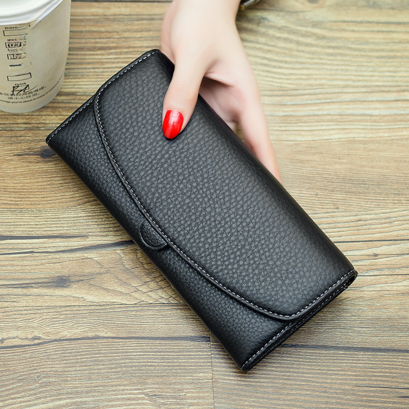 Portafoglio da donna in vera pelle, lungo e di grande capacità, con scomparti per carte di credito e chiusura a zip.