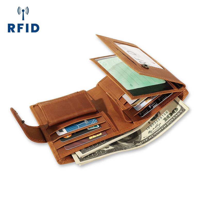 RFID Multi-Card Slot Genuine Leather Men's Wallet Coin Purse Men's Bag Multi-Functional Crazy Horse Leather Wallet Money Clip