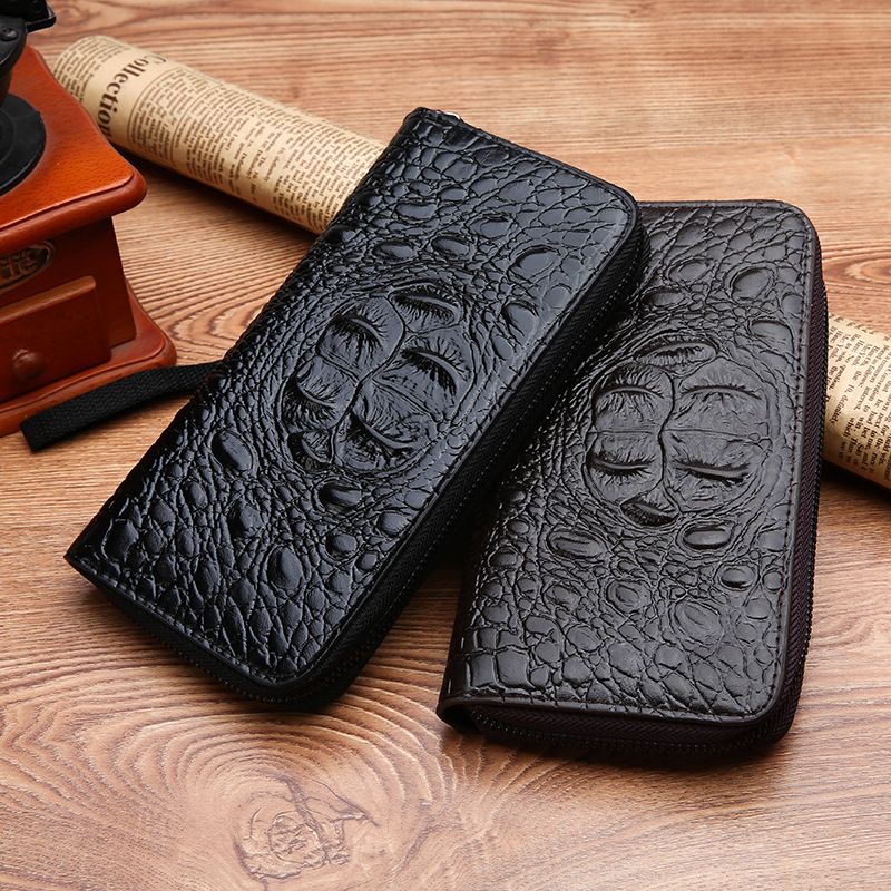 Portafoglio lungo da uomo con cerniera, grande capacità, alla moda, 2020, in pelle di coccodrillo