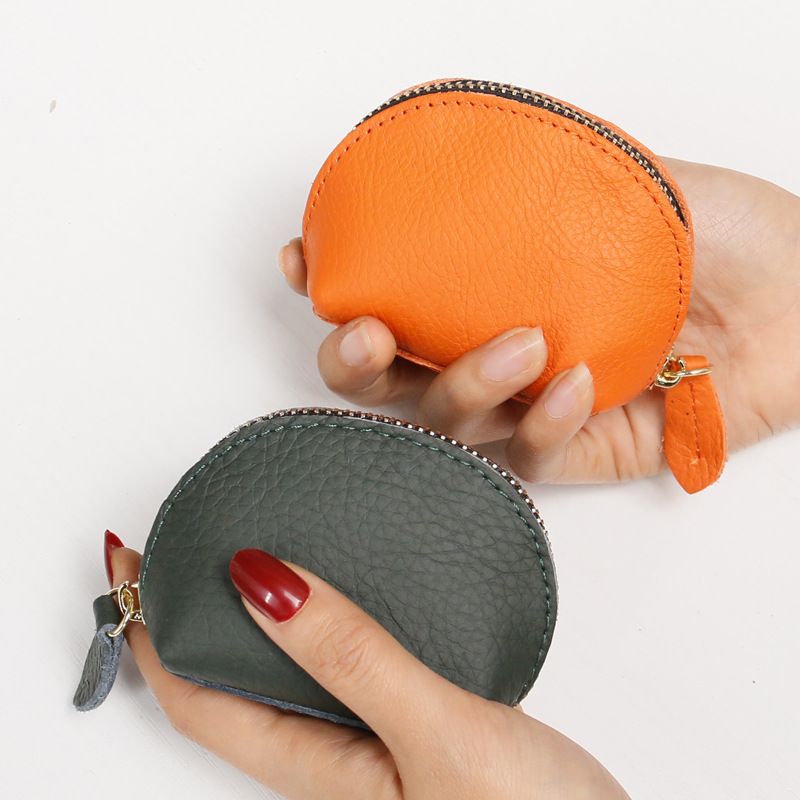 Portafoglio piccolo in vera pelle 2025 per donna, mini borsa con cerniera in pelle di vacchetta alla moda, semplice portamonete da donna