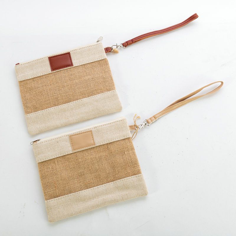Jute Money Bag Coin Purse Women Portable Card Holder Coin Key Storage Bag Card Holder Wallet Small Square Bag