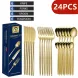 Gold Stainless Steel Cutlery Set Knife Fork Spoon Dinnerware Matte Tableware Wedding Birthday Sierware Dinner