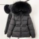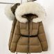 This 2025 mid-length down coat combines luxury raccoon fur with a sleek silhouette, perfect for effortless elegance in chilly weather.