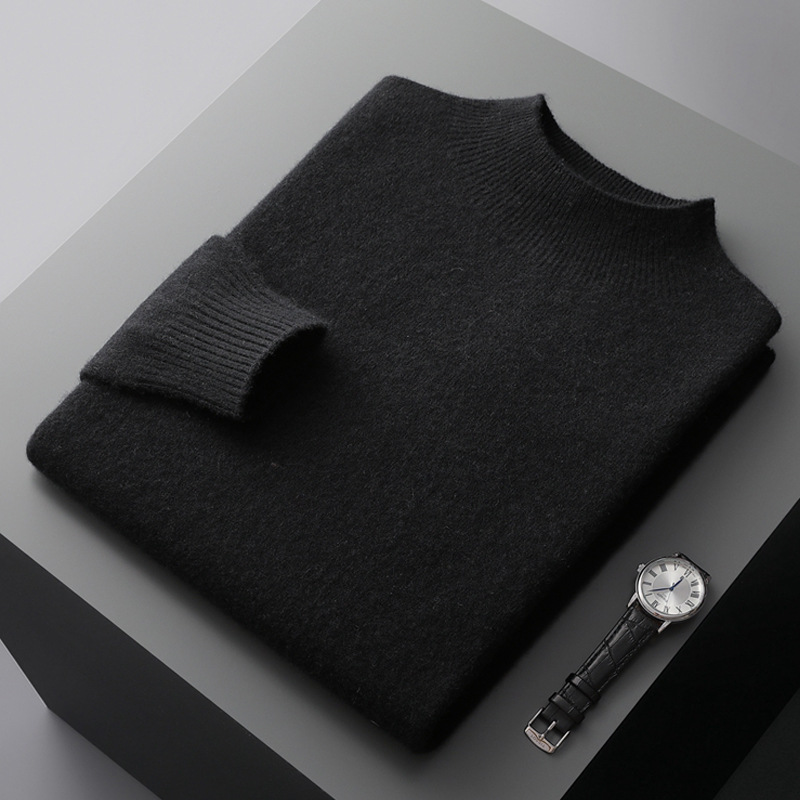 First line ready to wear semi high necked pure wool sweater for men in autumn and winter, as a base layer, long sleeved pullover, knitted sweater