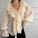 Primavera nuova camicia in chiffon con scollo a V e maniche a palloncino con volant moda all'ingrosso top da donna