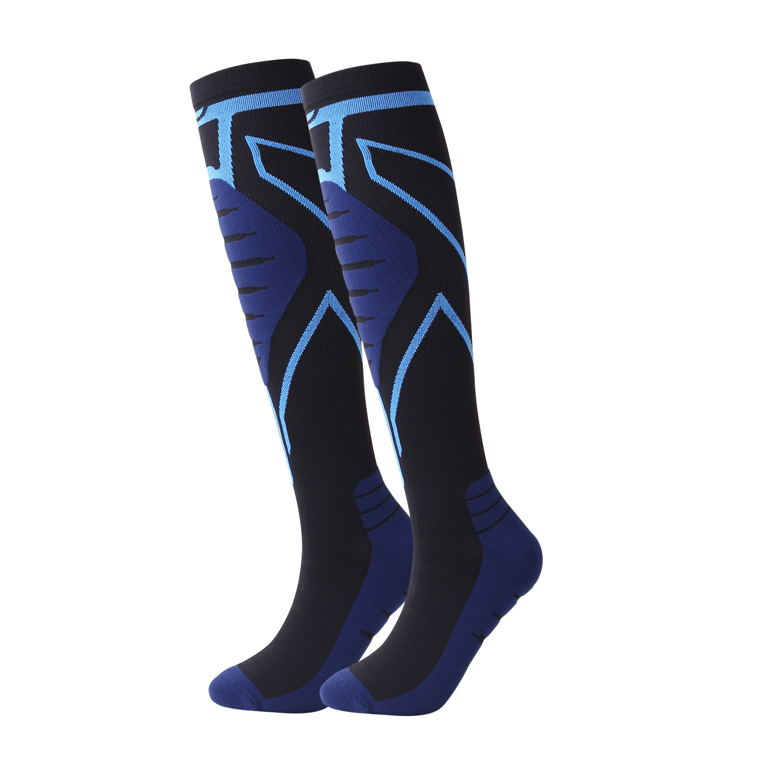 Calzini sportivi professionali a pressione, calzini da corsa per maratona all'aperto, fondo in spugna, protezione polpaccio elastica alta, calzini a compressione a tubo lungo