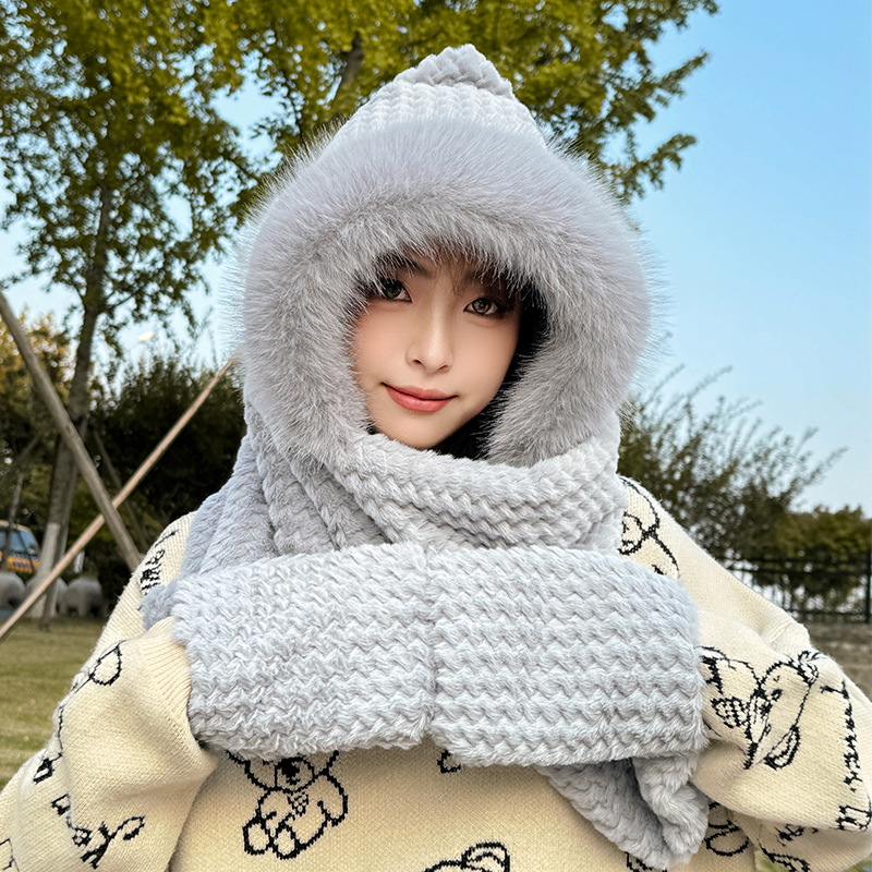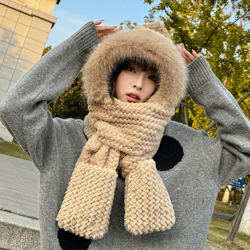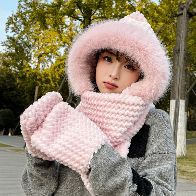 Autumn and winter furry hats, children's furry ear protection, warm hats, scarves, gloves in one three piece set, windproof and cold proof hats
