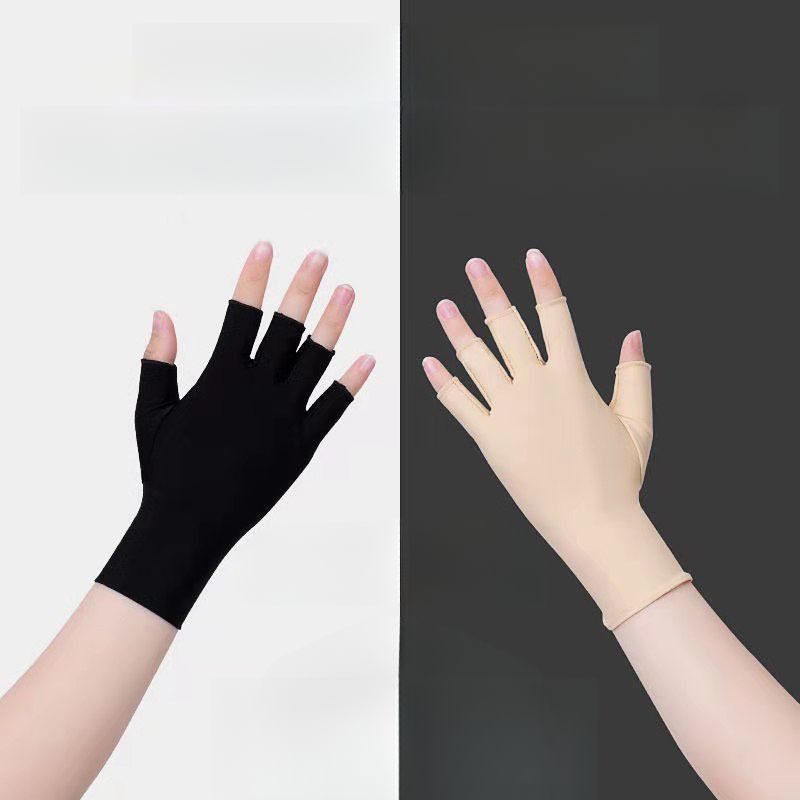 Sun Protection Gloves for Women, Stretchy Thin Half-Finger, Two-Finger Exposed, Outdoor UV Protection, Driving, Sports, Nail Art Gloves