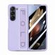 Custodia per telefono con cinturino da polso in pelle PU per Samsung Galaxy Z Fold 5 5G con copertura in plastica di protezione in vetro dello schermo frontale