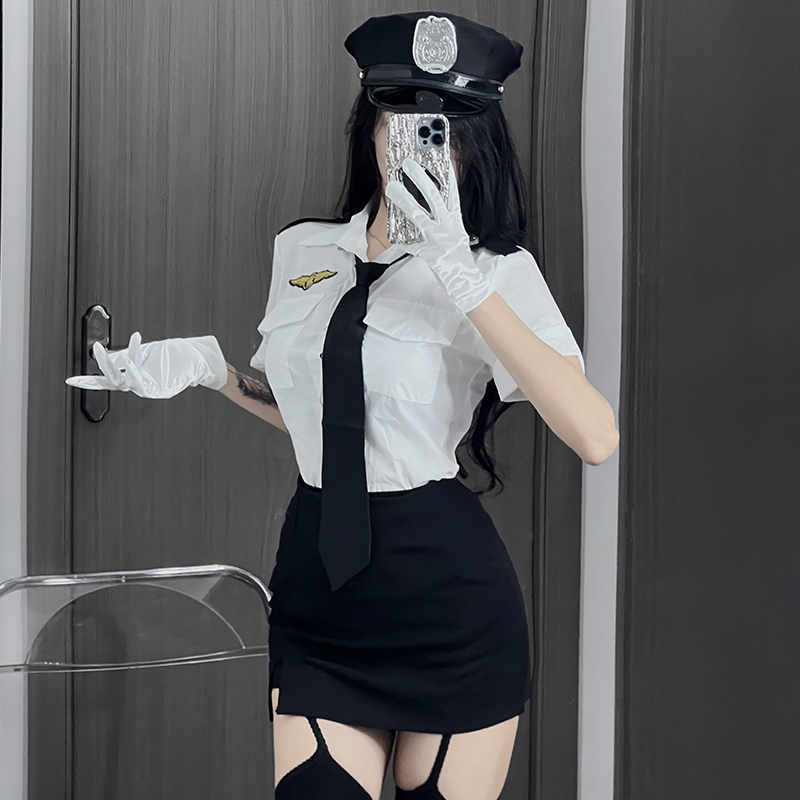 PVJU Captain Female Police Uniform Cosplay Nighttime Role Playing Officer Costume Anchor Flight Attendant Costume