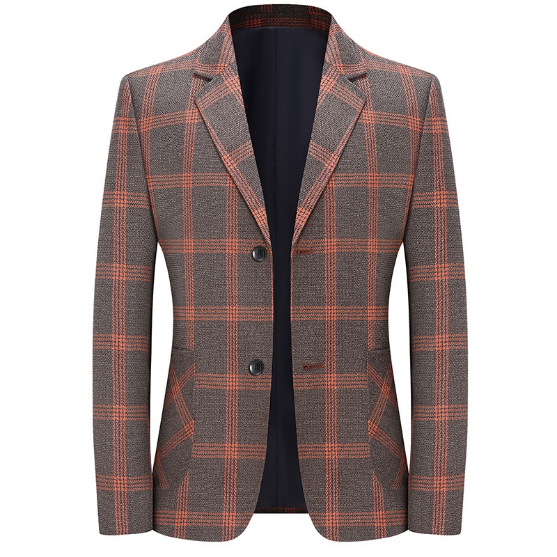 Material function:Machine washable, wear-resistant, no ironing needed, high color fastness,Product Source Category:In Stock,Brand:Simplified Nine Paths,Item Number:JD9888,Bargain Category:Business gentleman over 35 years old,Design:Slim Fit,Collar Style:Tuxedo Lapel,Front placket:Single-row Two-Button,Style:Light Business,Pattern:Plaid Pattern,Error margin:1-2cm,Suitable for the season:Spring and Autumn Season,Is it in stock?:No,Fabric Name:Synthetic Blend Fabric,Content of the main fabric components:78,Main fabric composition:Polyester Fiber Dacron,Lining Composition:Polyester Fiber Dacron,Applicable Scenarios:Casual,Slit Design:No slits,Applicable to the target audience:Middle-aged,Craftsmanship:Non-iron treatment,Year/Season of Release:Autumn 2024,Design details:Jacquard Pattern,Length of clothing:Regular,Sleeve Length:Long Sleeve,Clothing Pocket Styles:3D Patch Pocket,Color:Blue, orange,Size:170/M, 175/L, 180/XL, 185/XXL, 190/XXXL, 195/XXXXL,Design of Clothing Hem:Round Hem,Main downstream platforms:, , , Independent Site,Main sales regions:Europe, Southeast Asia, Others,We have authorized private labels available:yes,Is it exclusively for cross-border export supply?:yes,Original Design Source:No,Is there a quality inspection report?:No,Suitable age group:adult,Applicable Gender:Male,Product Category:Casual Blazer