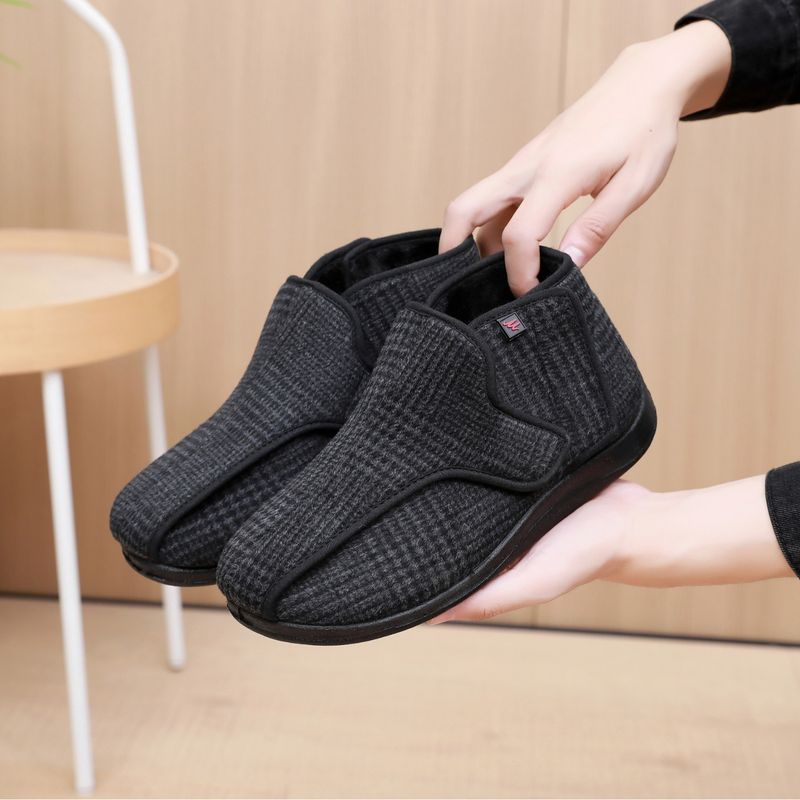 Qiwago New Winter Warm Fleece-Lined Mid-Top Cotton Shoes Extra Wide Plump High Instep Rubber Foam Soft Flat Sole