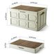 Folding storage space with a large capacity that can be used to store all kinds of camping accessories or various books for everyday use. It can be used as a makeshift table or cutting board with a wooden board. Compact foldable, does not take up space, flexible use scenarios, not only outdoor picnic camping, home or self-propelled boot can be used.