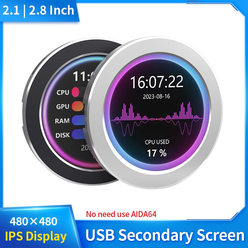 Raffreddatore ad acqua USB da 2,8/2,1 pollici, schermo secondario 480x480 con funzione di analisi dello spettro musicale, monitoraggio CPU RAM GPU