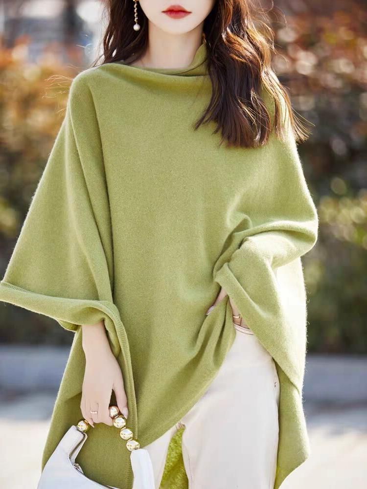 ragazza 2024 autunno nuovo elegante maglione alla moda da donna con scollo a V cappotto scialle largo di media lunghezza