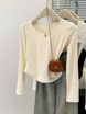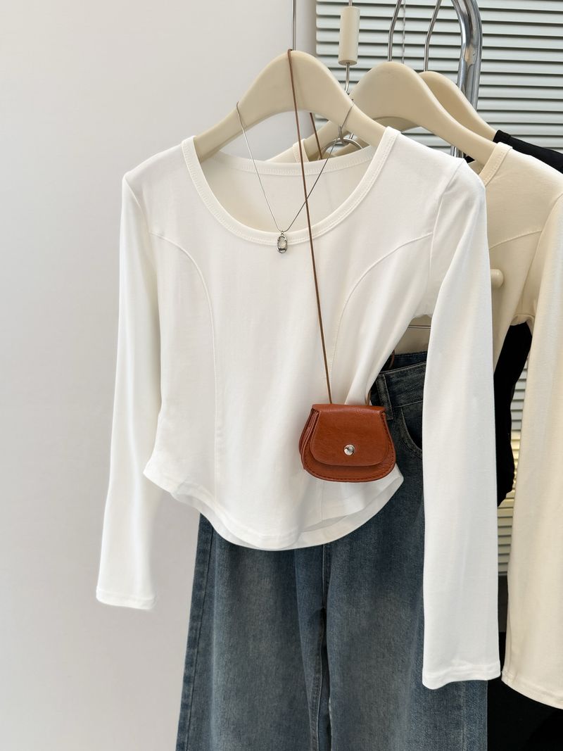 Ragazza Ins Super Popolare Maglietta Corta a Maniche Lunghe con Spalle Scoperte per Donna Inizio Autunno Stile Coreano Interno Esterno Vestibilità Slim