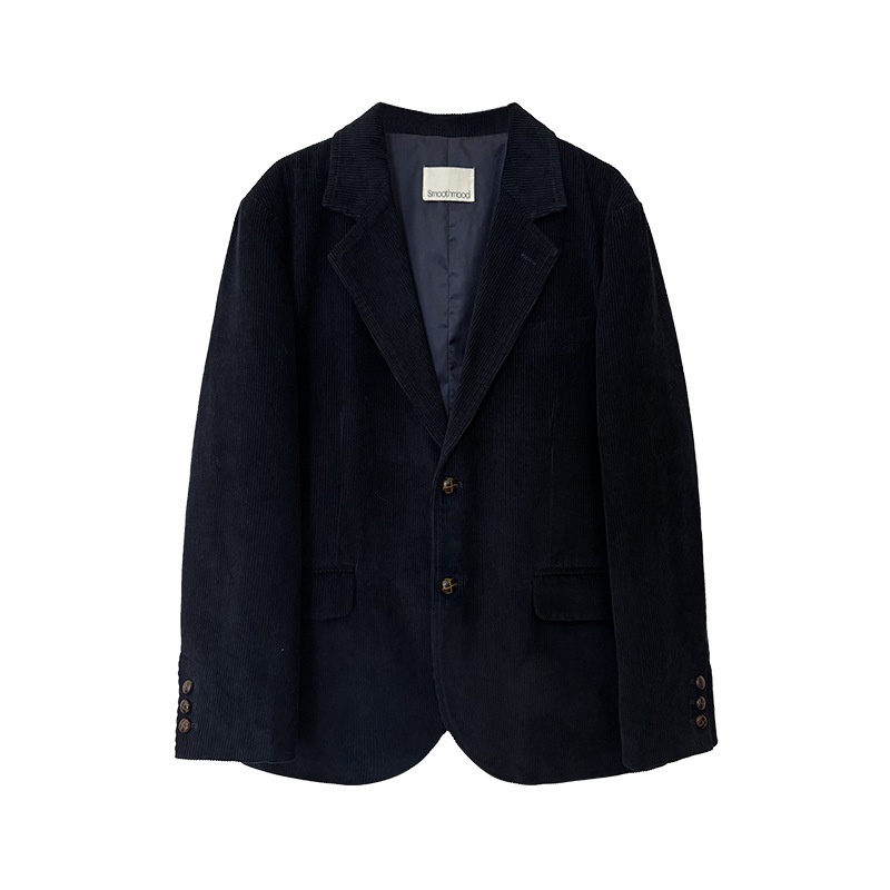 ragazza Ragazza Coreana SMO*THMO*D Retro Velluto a coste Blu Navy Blazer Elastico in Vita Gonna Set per Donna Primavera e Autunno