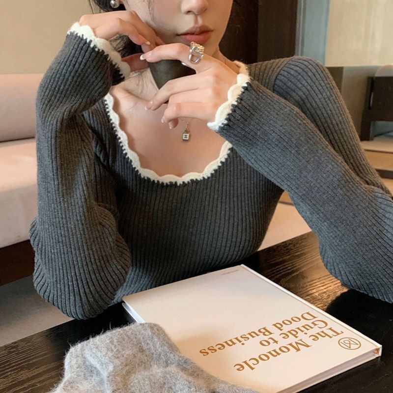 Ragazza Stile Francese Collo Rotondo Basso Maglia Per Donna Inizio Autunno Vintage Elegante Maglione Base Slim Fit Maglione Interno