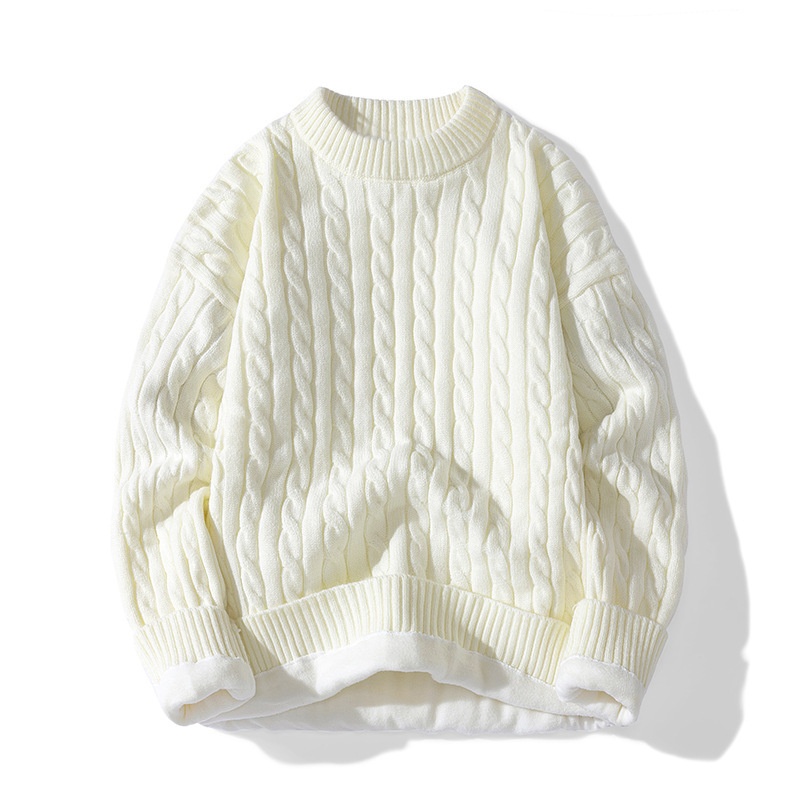 Product Source Category:In Stock,Material function:Breathable, moisture-wicking, high color fastness,Item Number:808A-MY8001,Brand:other,Design 1:Pullover,Design:Loose Fit,Collar Style:Round Neck,Sleeve Length:Long Sleeve,Thickness:Fleece-lined,Style:Korean Style,Design details:Pullover,Bargain Category:Fashionable Urban 24-35 Years Old,Is it in stock?:yes,Inventory Type:Complete order,Suitable for everyone:Youth,Year/Season of Release:Autumn 2024,Fabric Name:Cotton Blend,Main fabric composition:Acrylic Fiber,Content of the main fabric components:41%%,Applicable Scenarios:Casual,Suitable for the season:Winter,Applicable to the target audience:Youth,Color:Off-white, black, red, blue, purple, off-white with fleece, black with fleece, red with fleece, blue with fleece, purple with fleece,Size:M,L,XL,2XL,3XL,Craftsmanship:Twisted Flower,Is it exclusively for cross-border export supply?:No,Original Design Source:yes,Is there a quality inspection report?:No,Quality Inspection Report Number:Contact customer service,Suitable age group:adult,Applicable Gender:Male,Product Category:Knit Sweater